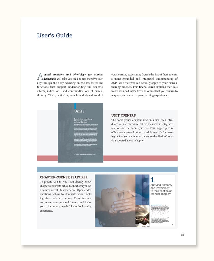 With thoughtfully layered content, Applied Anatomy & Physiology for Manual Therapists initially establishes foundational concepts and terminology for students. Later, in-depth details and vital interrelationships are presented once students are ready to make meaningful connections between the body systems and their application to manual therapy.